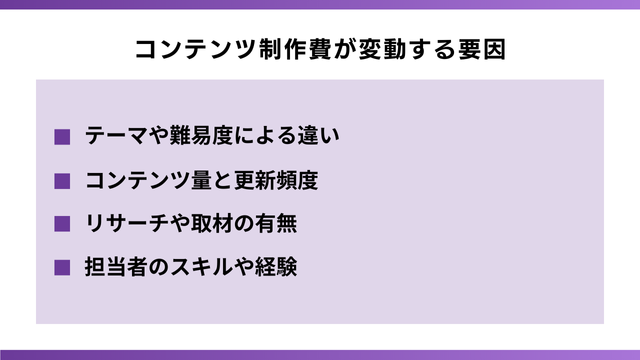 コンテンツの制作費用が変動する主な要因は次の4つです。