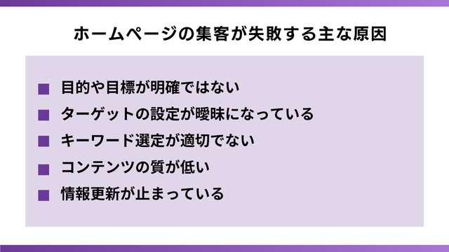 ホームページの集客が失敗する主な原因